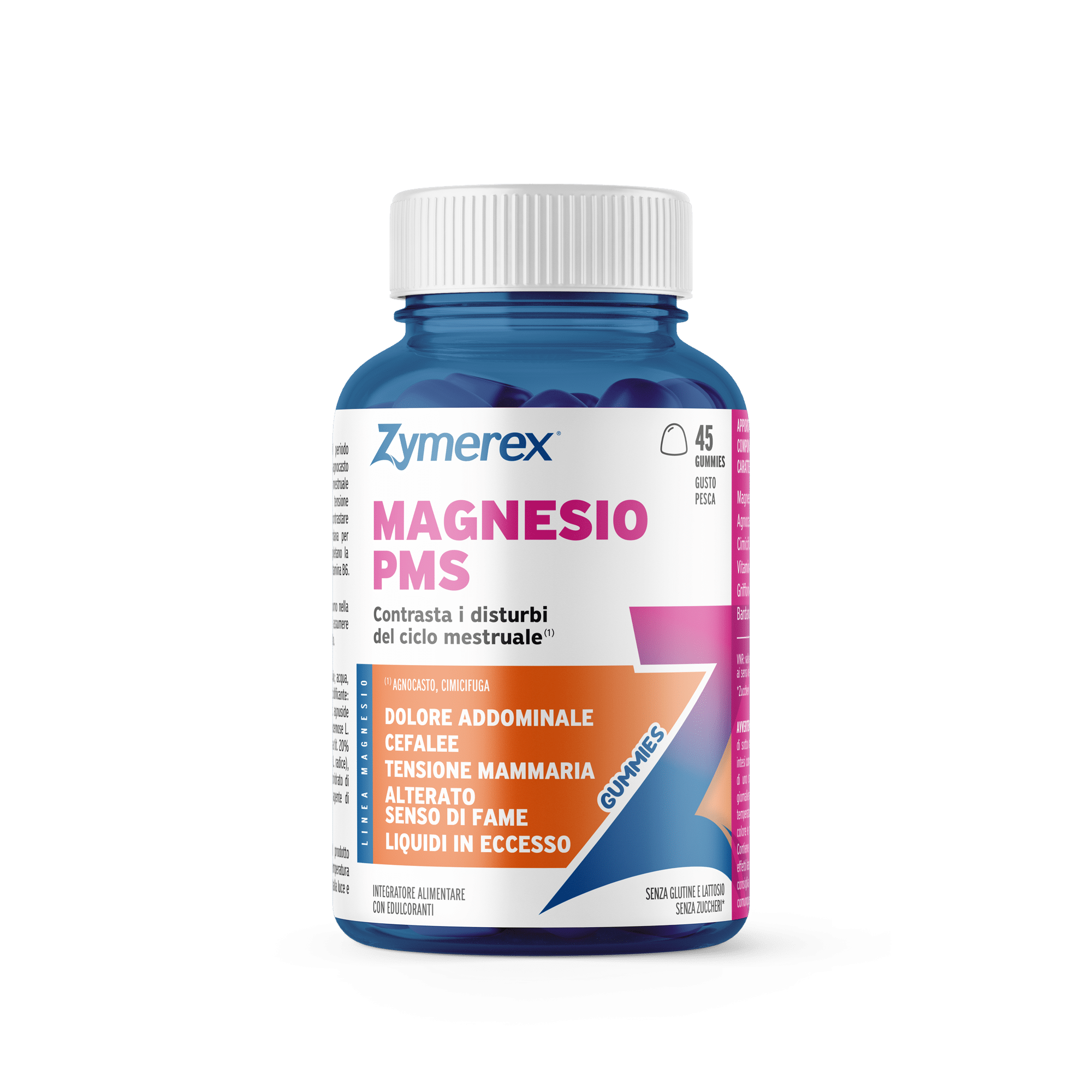 Zymerex Magnesio PMS è un integratore alimentare a base di magnesio e vitamina B6 e con estratti vegetali di cimicifuga, griffonia, agnocasto e bardana, dosati in modo specifico tra di loro per rispondere alle esigenze della donna durante la fase premestruale che si può manifestare con: dolore addominale, cefalee, tensione mammaria, alterato senso di fame, liquidi in eccesso. La cimicifuga e l’agnocasto sono utili nel contrasto dei disturbi del ciclo mestruale. La griffonia sostiene il normale tono dell’umore e aiuta il controllo del senso di fame. La bardana è utile perché favorisce il drenaggio dei liquidi corporei. La vitamina B6 favorisce la regolazione dell’attività ormonale.