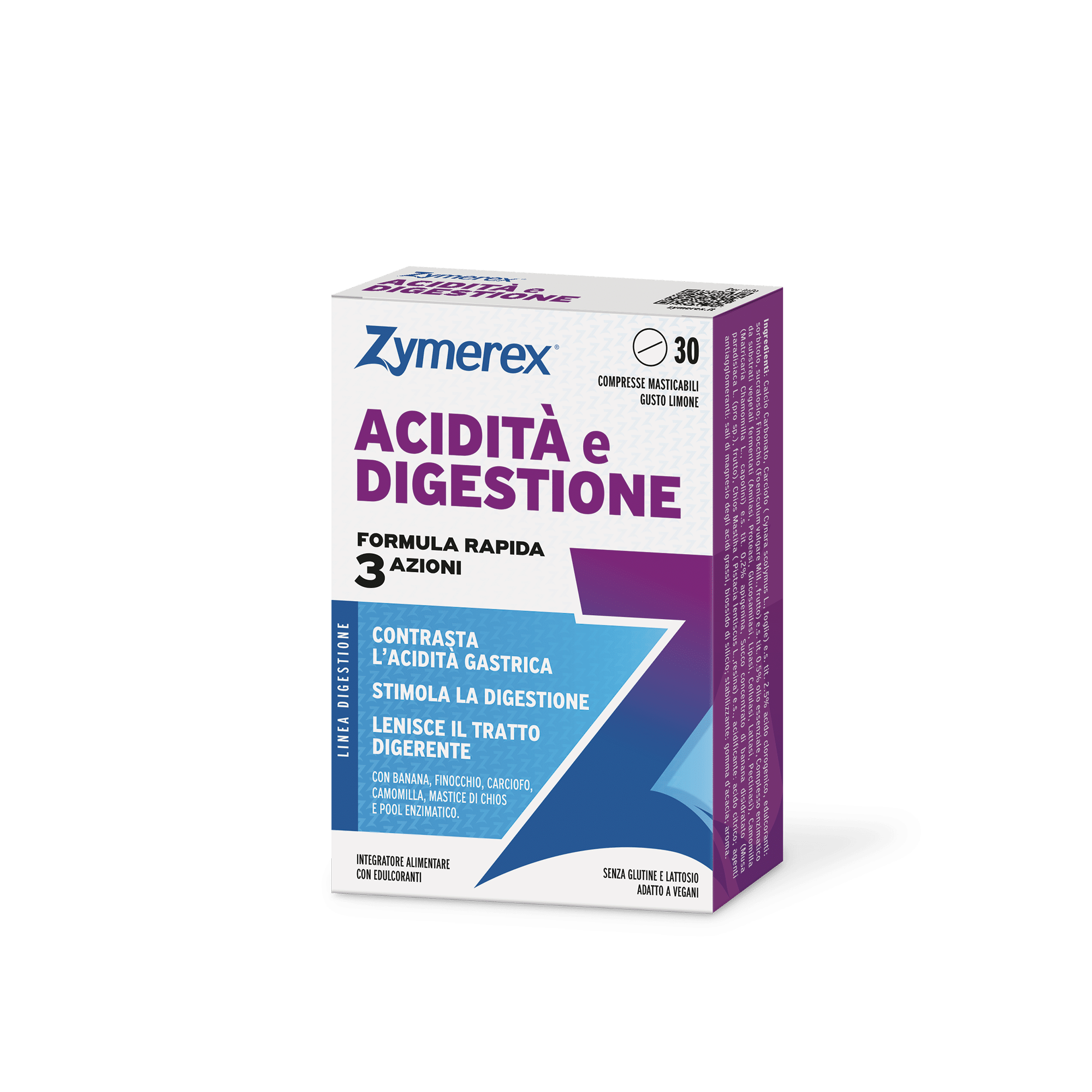 La linea Zymerex Digestione coadiuva il processo digestivo dopo i pasti, cioè nella fase della digestione e aiuta a prevenire e contrastare la sensazione di pesantezza, sonnolenza post prandiale, reflusso o acidità.