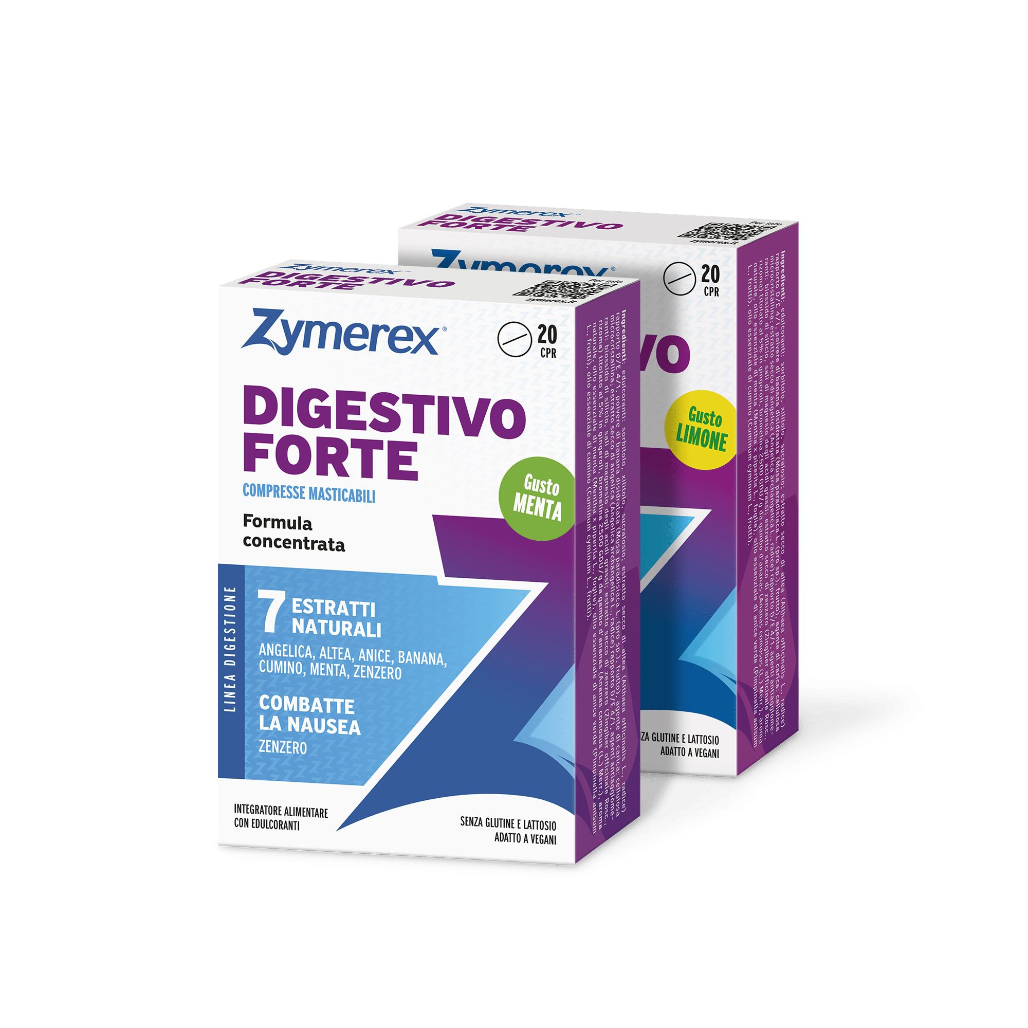 Zymerex Digestivo Forte è formulato con 7 estratti vegetali (tra cui zenzero, altea e menta) per agire sulla digestione difficile, sui gas gastrointestinali e sulla nausea. Zymerex Acidità e Digestione si distingue per la presenza del pool enzimatico completo e del mastice di Chios, con un’azione più orientata al supporto enzimatico della digestione e alla gestione dell’acidità. Chi soffre prevalentemente di nausea o gonfiore può preferire Digestivo Forte; chi cerca un’azione combinata su acidità ed enzimi digestivi troverà in Zymerex Acidità e Digestione la soluzione più completa.